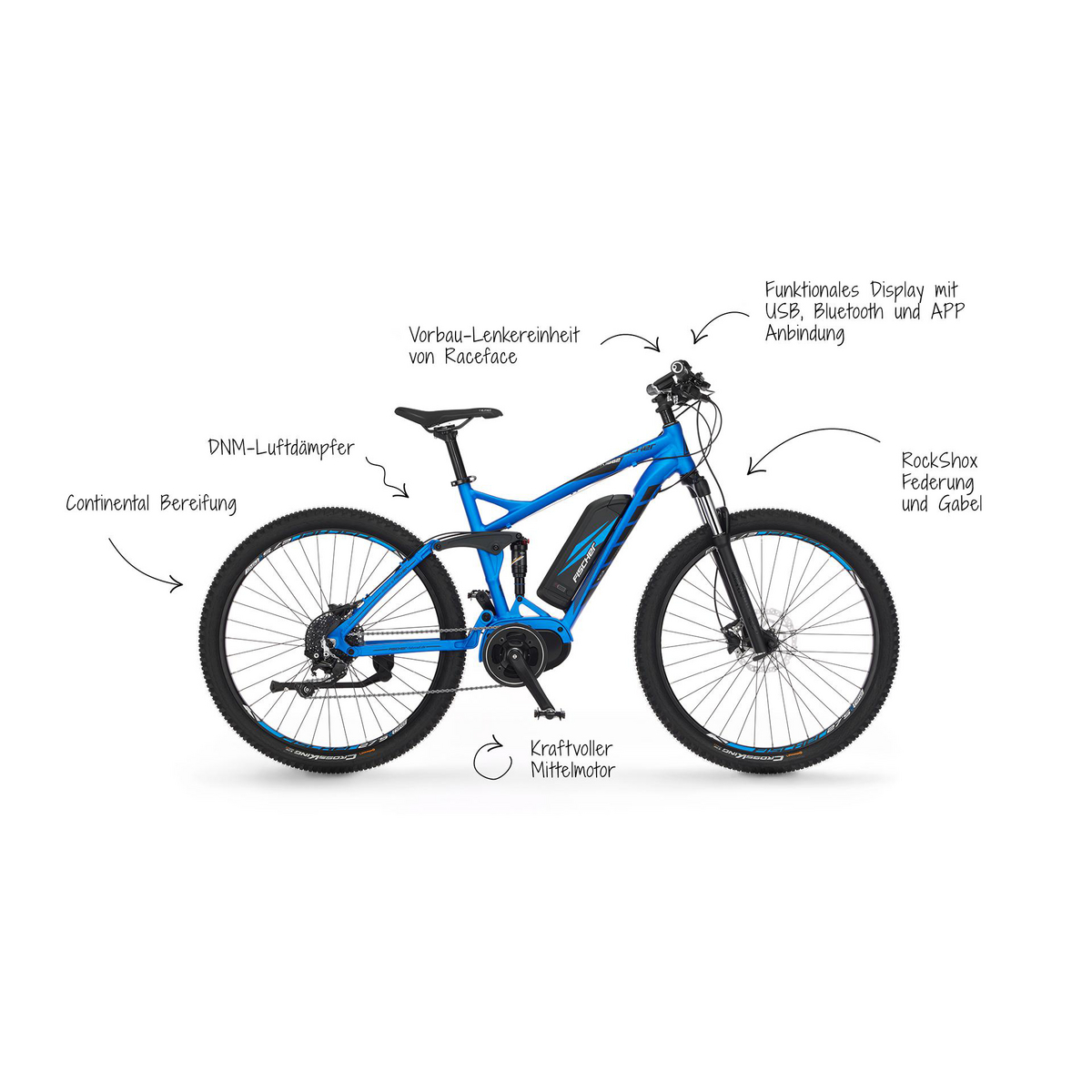 Das FISCHER MONTIS EM 1862 ist mit seinen hydraulischen Scheibenbremsen, dem verlässlichen Luftdämpfer und dem angenehm sportlichen MTB-Sattel die perfekte Wahl für deine abenteuerlichen Profi-Trailrides. Mit nur kg Gewicht und einer Belastbarkeit von bis zu 135 kg ist es robust und dennoch leicht zu transportieren. Die hochwertige SR Suntour RS XC 30 Federgabel und die zuverlässige Shimano 9-Gang XT garantieren eine sportliche und schnelle Fahrt. Der leistungsstarke 48 V, 557 Wh Lithium-Ionen-Akku bietet dir bis zu 160 km* Reichweite und kann durch die semi-integrierte Bauweise einfach entnommen und aufgeladen werden. Zusätzlich bietet dir FISCHER eine 24-monatige Akku-Garantie. Mit Hilfe des modernen Bafang LCD 1350 CAN Bus Displays kannst du die Unterstützung des besonders kraftvollen Bafang M400 Mittelmotors mit 80Nm Drehmoment leicht selbst steuern und erhältst alle wichtigen Informationen auf einen Blick - Fahrspass garantiert.